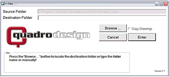X-Files will make a list of all referenced documents, then if drawings is selected, open each drawing in the current working directory to check its list of references against the referenced document list, if any drawing referenced files match then the drawing will also be copied to the destination directory along with the previously listed parts and sub-assemblies. X-Files has been extensively tested on SolidWorks® versions 2003, 2004 and 2005.